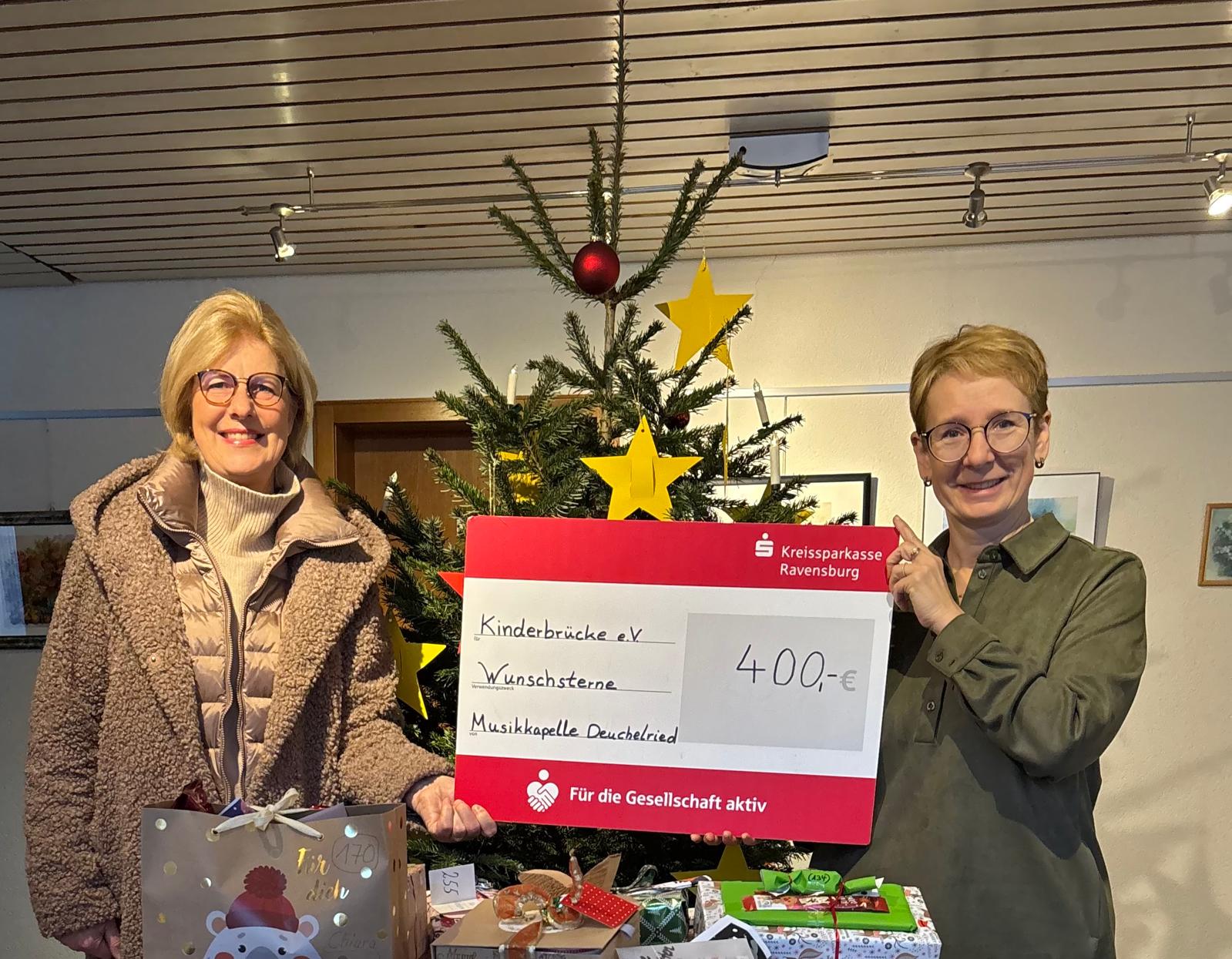 Die Weihnachtsspende der Musikkapelle Deuchelried geht dieses Jahr an die Kinderbrücke Isny e.V. Herzlichen Dank für 400 € zu Gunsten der Wunschbaumaktion!